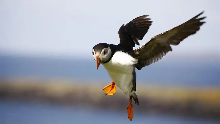 海雀科鸟类的飞行行为在一定程度上受到其解剖结构的限制。它们的翅膀相对较短且扁平,使得它们在空中飞行时相对笨拙。海雀科鸟类在水下的游动能力却相当出色。它们能够迅速地在水中游动,捕捉海洋中的猎物。